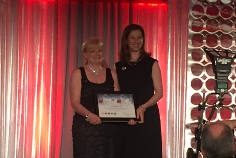 Légende : Anne Ethier est fière d’accepter au nom de la TD le prix récompensant les meilleurs employeurs au Canada (grandes entreprises) lors de la cérémonie de remise des prix Great Places to Work tenue le 21 avril 2016.